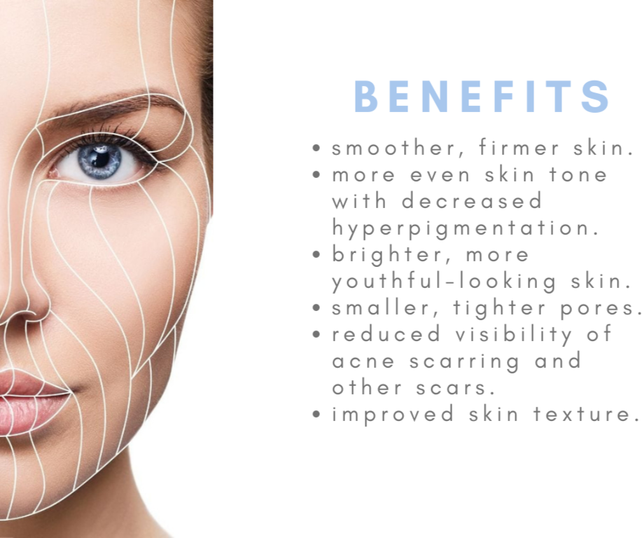 Microneedling produces controlled micro injuries to the skin and stimulates the release of growth factors and wound healing process.